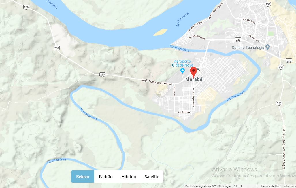 A cidade de Marabá está localizada no sudeste do estado do Pará, na latitude: -5.3811326 e Longitude: -49.1331046, entre os cursos do Rio Itacaiúnas e do Rio Tocantins, que se cruzam logo após a área urbana do município (Figura 1). Com área territorial de 15.128 km², com altitude média de 84 m e clima tropical semiúmido. Em relação a capital do estado do Pará fica distante cerca de 500 Km (MAPASAPP, 2019). Atualmente, o município de Marabá compreende uma extensa zona urbana formada por cinco núcleos que dividem a cidade (Marabá Pioneira, Nova Marabá, Cidade Nova, São Félix e Morada Nova) (MBAAGORA, 2019).