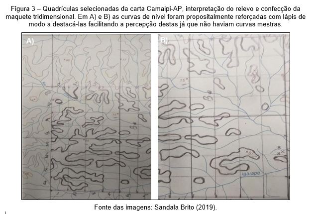 - A Carta Planialtimétrica do Camaipi-AP (MI-242) articula-se ao norte com a Folha Cupixi (MI-200) e a leste e oeste, respectivamente com as folhas Macapá-MI-243 e MI-241 (vide Figura 2). Para esta carta planialtimétrica foram confeccionadas 02 (duas) maquetes de relevo com base nas informações das curvas de níveis extraídas de diferentes partes da mesma. Isto deveu-se ao fato de que a área apresenta relevo diferenciado, proporcionando um olhar distinto por parte dos acadêmicos.